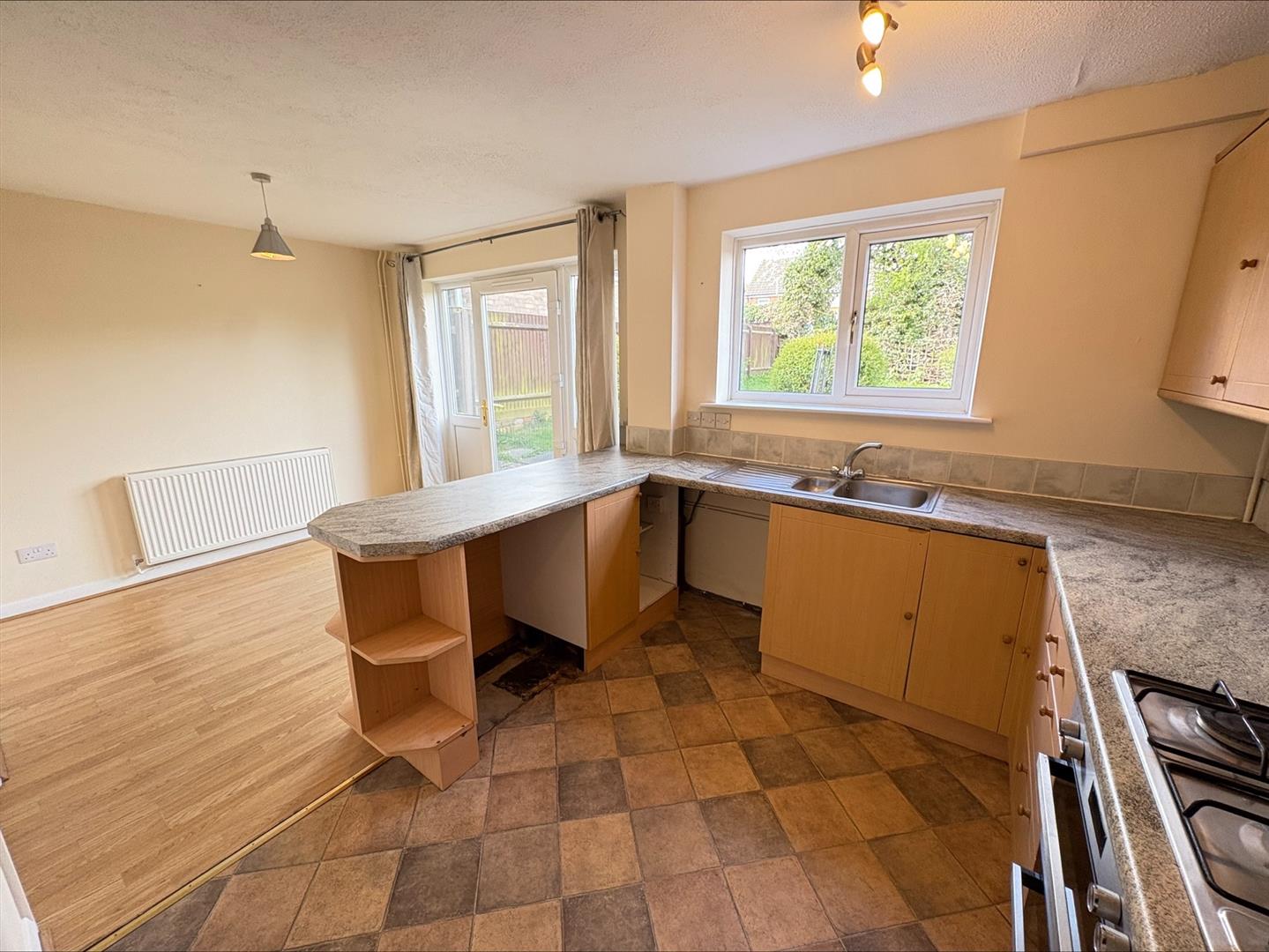 A welcoming lounge area provides an electric fire, uPVC double glazed window to front, radiator, 2 doors into the kitchen diner, stairs to first floor.