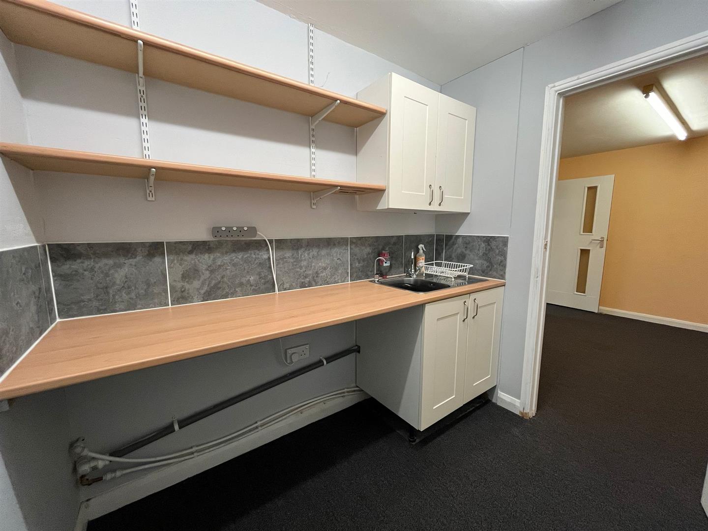 With sink unit and cupboard space.