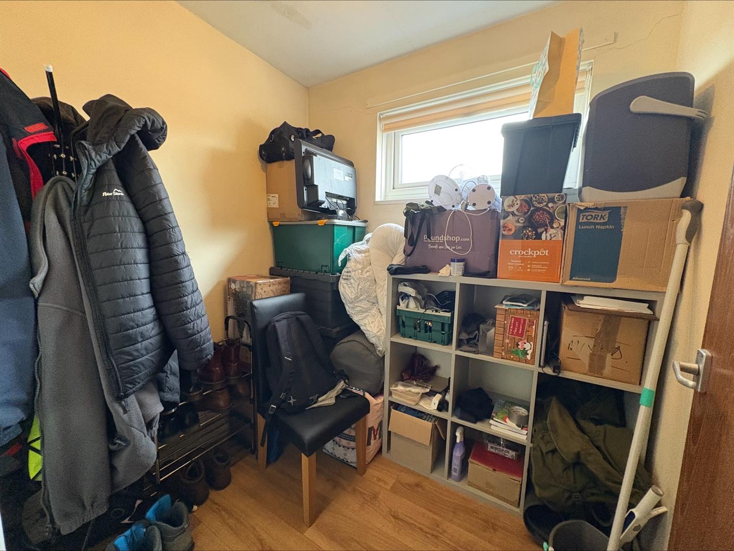 With consumer unit, uPVC double glazed window to the front and loft access hatch.