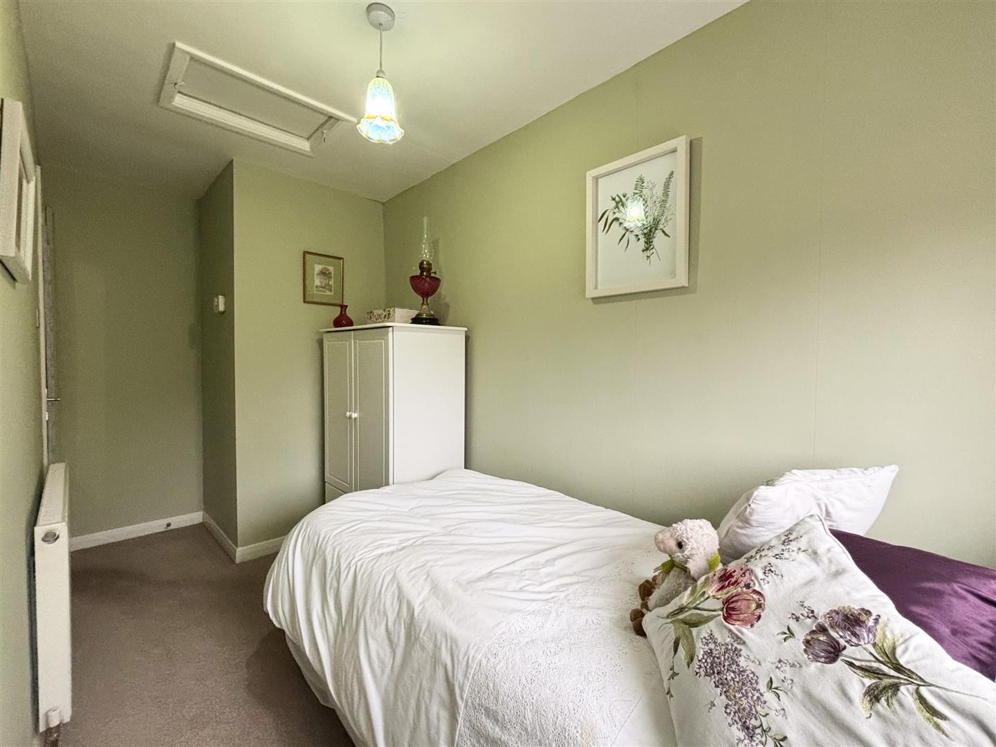 Single bedroom with single glazed timber window to rear x 2., loft hatch, radiator and archway into dressing area with clothes rail.