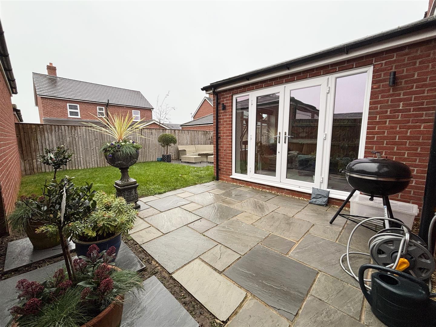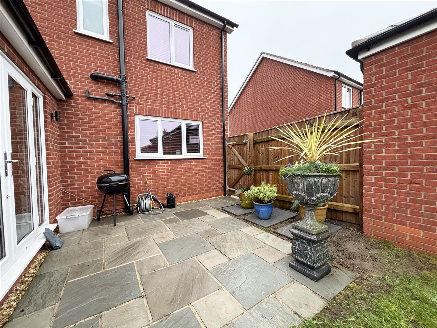 To the rear is a fully enclosed garden mainly laid to lawn with two block paved patios, plenty of space for alfresco dining in the summer months. There is an outside tap and lighting.