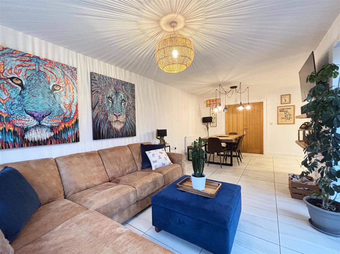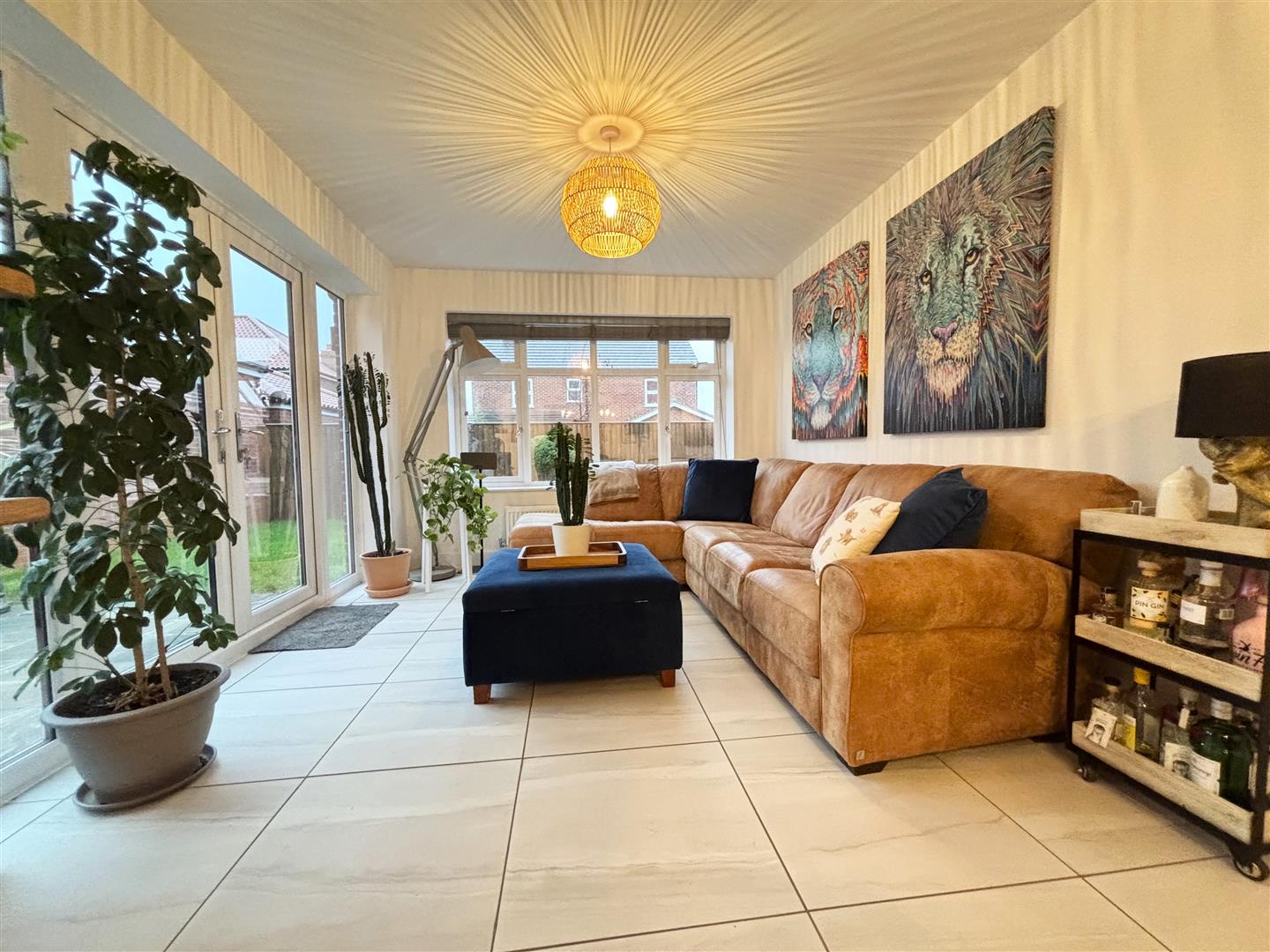 Continuation of tiled floor, 2 x radiators, T.V aerial point, uPVC double glazed window to the side and uPVC double glazed patio doors out to the rear garden.