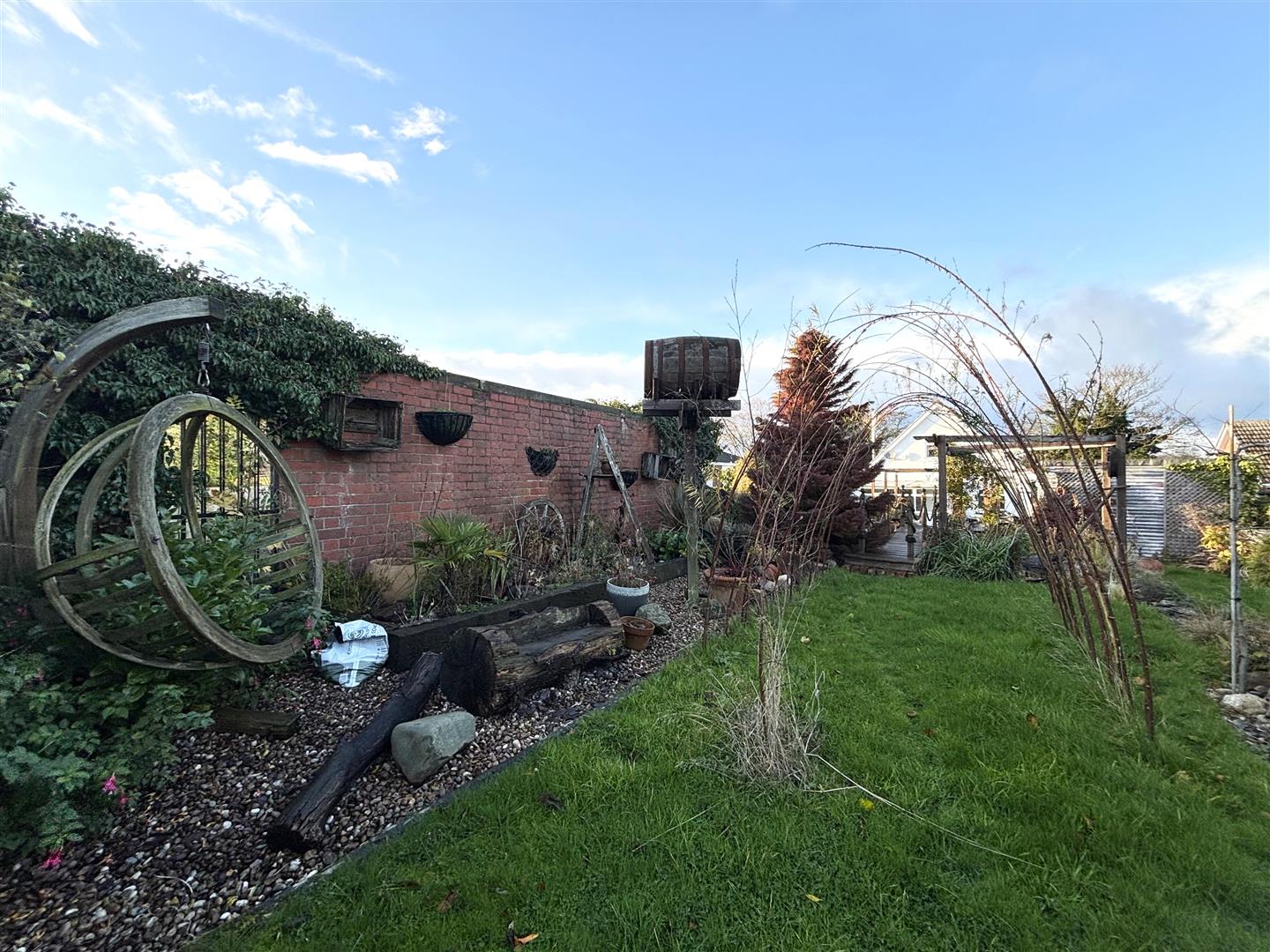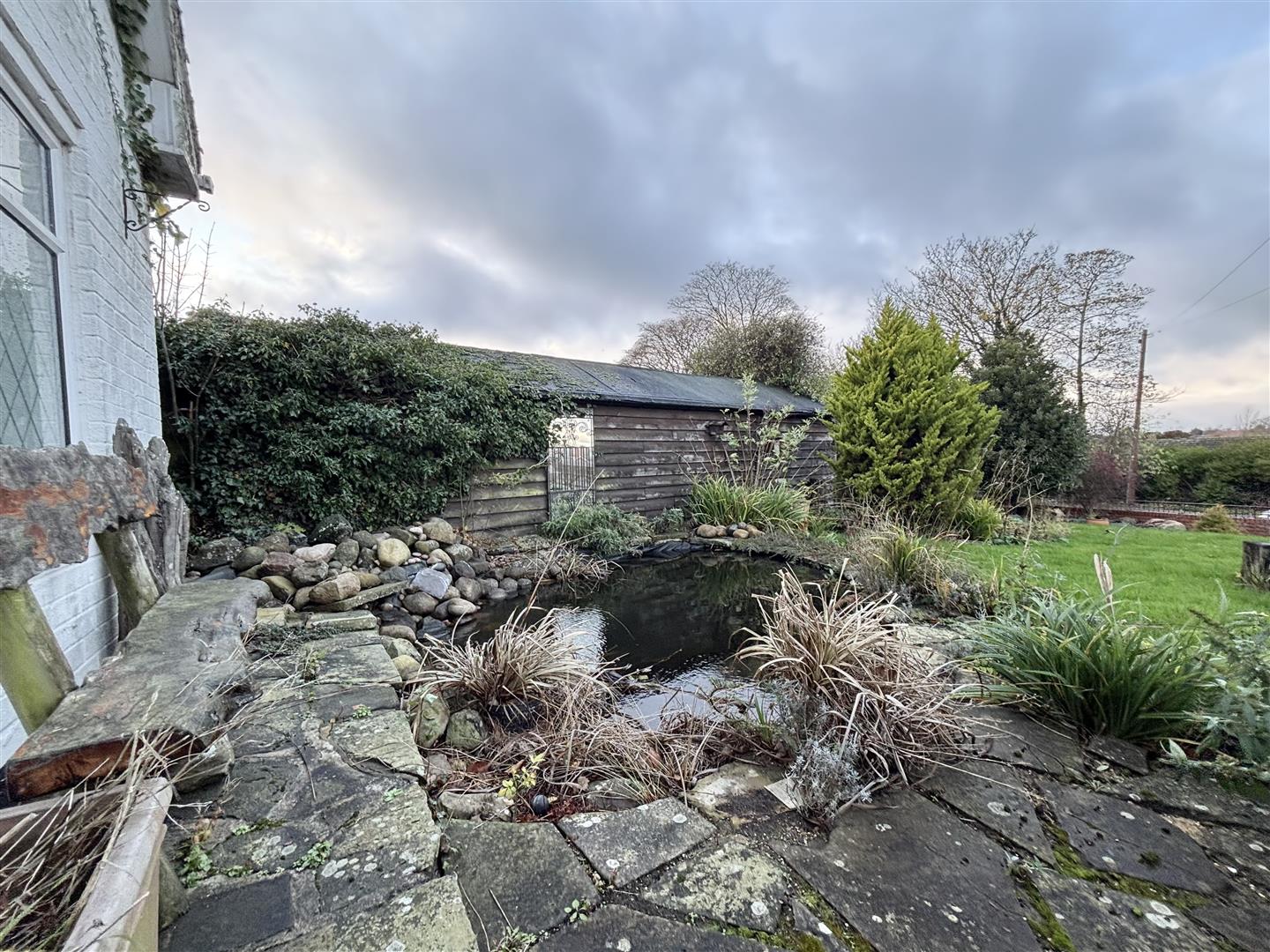 The property is set back from the road with a sizeable front garden which is mainly laid to lawn and features a pond with seating area overlooking the garden, there is also a range of matures shrubs and plants. The driveway provides ample off road parking and leads up to the car port.