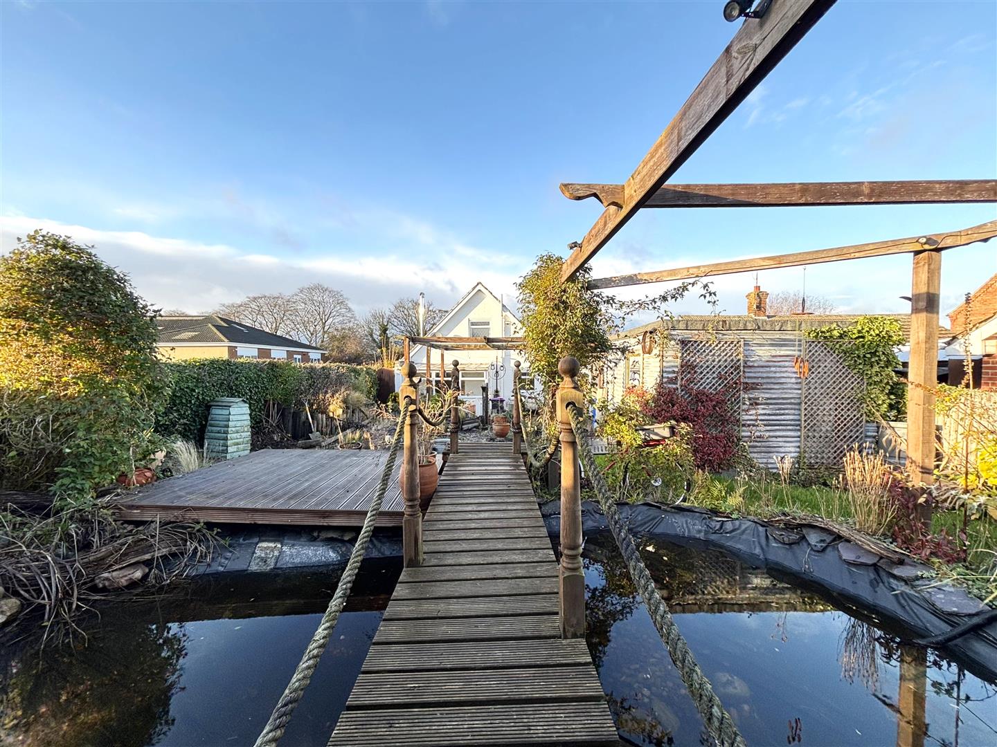 The rear garden is of a good size and features a range of mature bushes, plants and shrubs throughout. There are several outbuildings for storage and workshop space along with a bbq area at the bottom of the garden. A large pond creates an attractive feature and benefits from a bridge walk way over. There are multiple seating areas and places to enjoy the peaceful garden including a decking area, gravelled areas and areas laid to lawn.