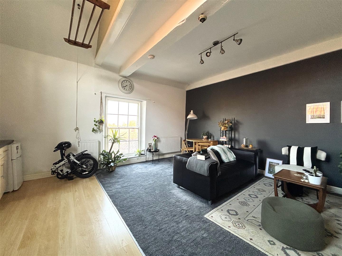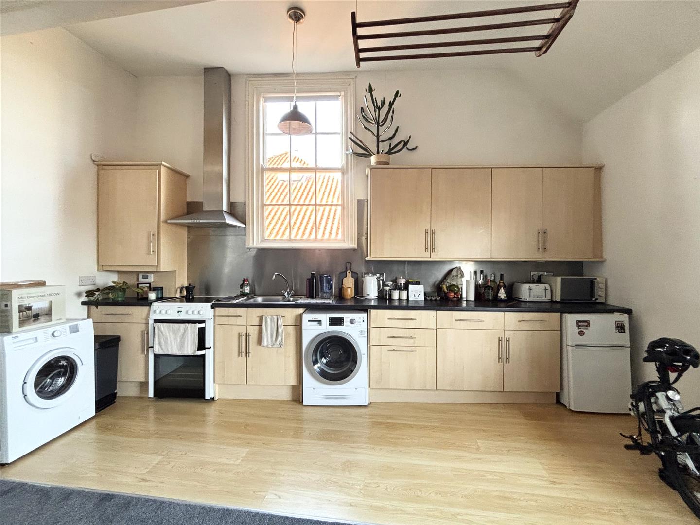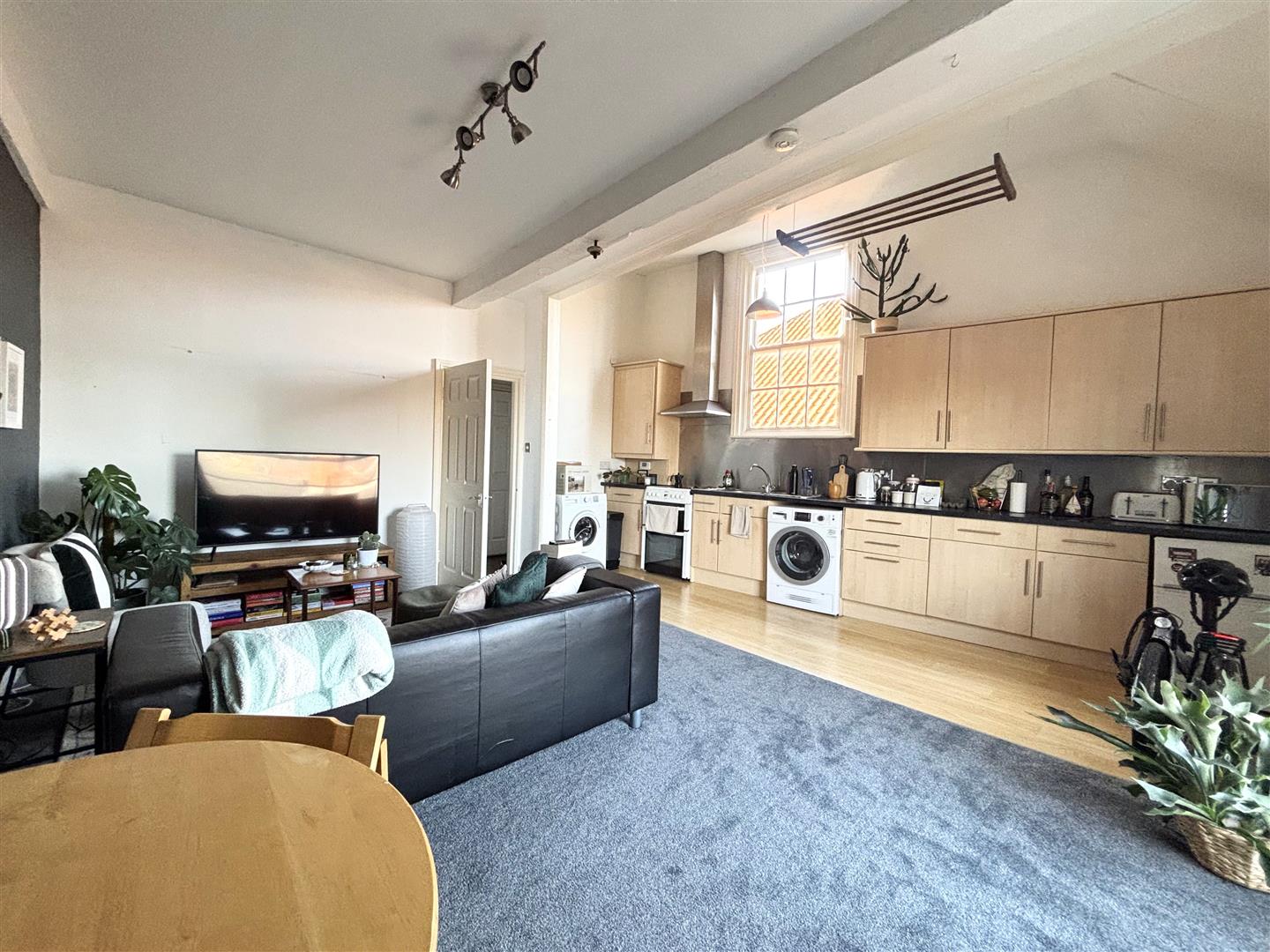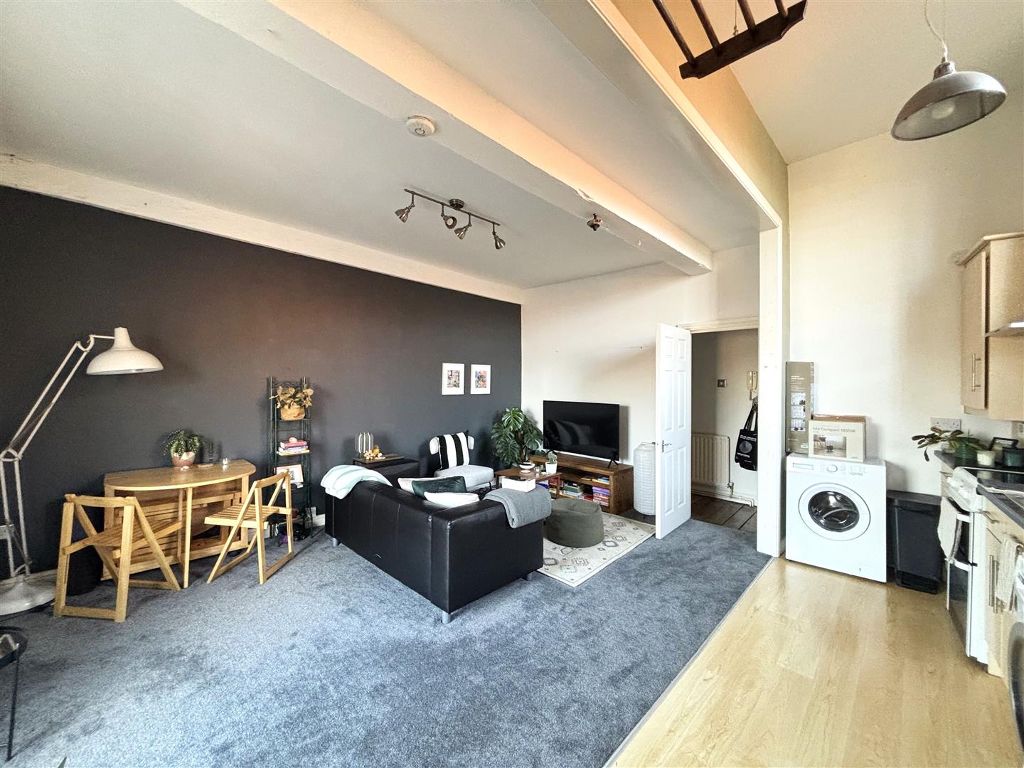 Bright and airy space with kitchen, dining area and living area. There are single glaze timber sash windows to the front and side, radiator, T.V aerial point and smoke alarm.