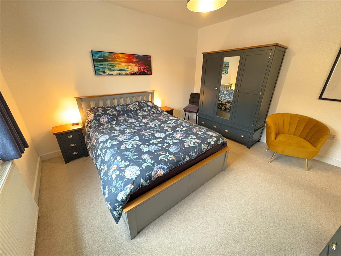 Double room with a radiator, uPVC double glazed window to the rear and fitted wardrobe and shelving in wall recess.